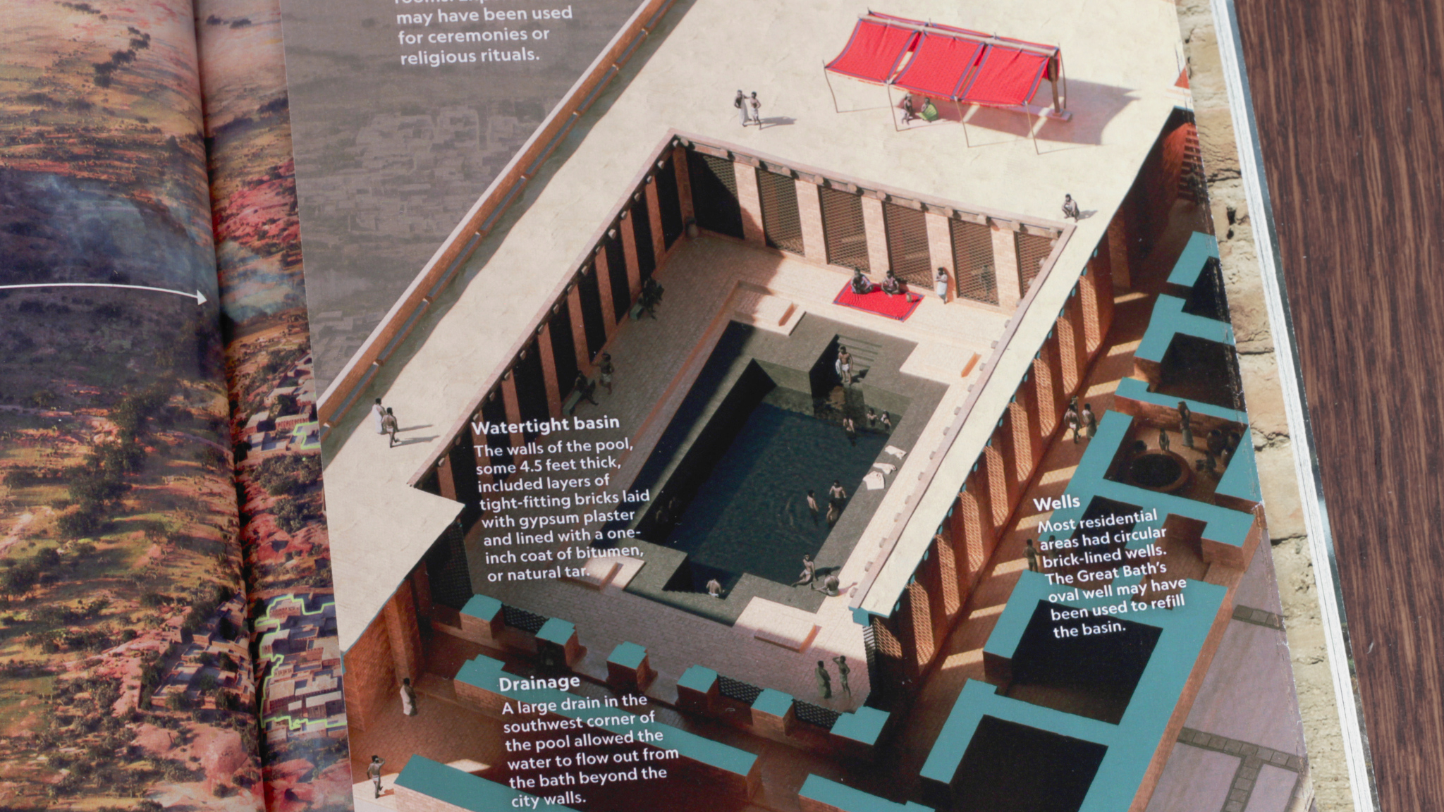 For an article on Mohenjo Daro in the May 2026 edition, National Geographic commissioned three 3D archaeological reconstructions: an overview of this city in the Indus valley, one of the Great Bath, and one of a residential area.
